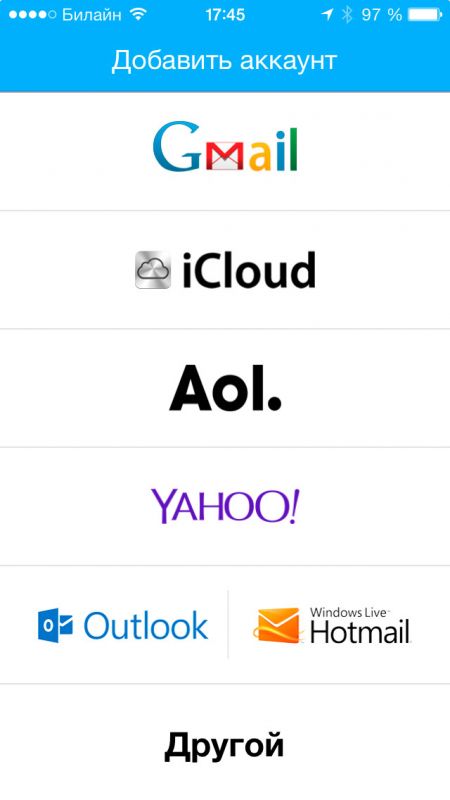 Поддерживает работу со всеми почтами. Для ряда почтовых сервисов, таких как GMail, Yahoo!, Aol предусмотрена облегченная настройка - достаточно ввести логин и пароль. Для остальных же почтовых сервисов в Molto необходимо вводить параметры соединения.