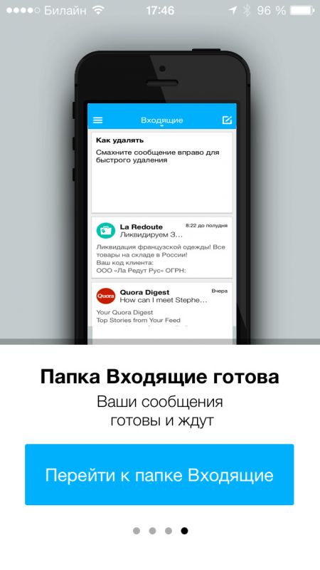 - все входщие сообщения находятся в одной папке, хотя ящиков может быть много,