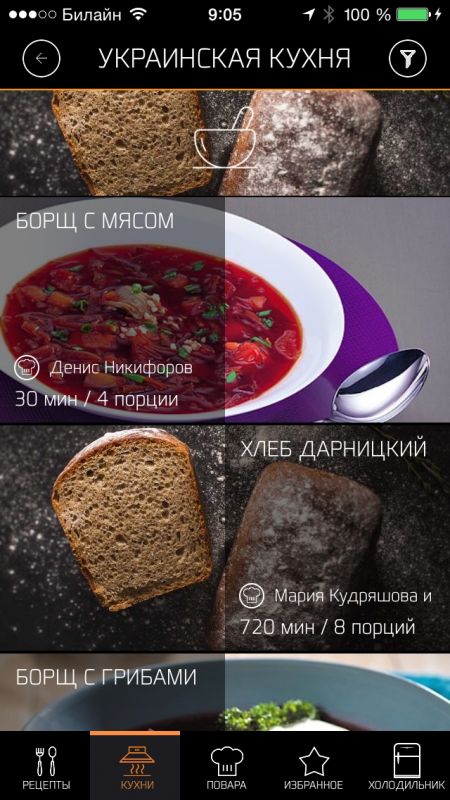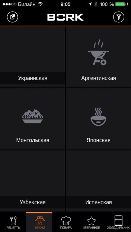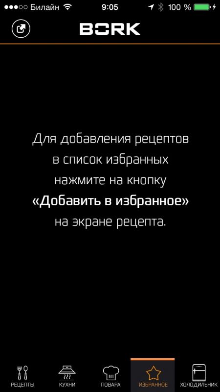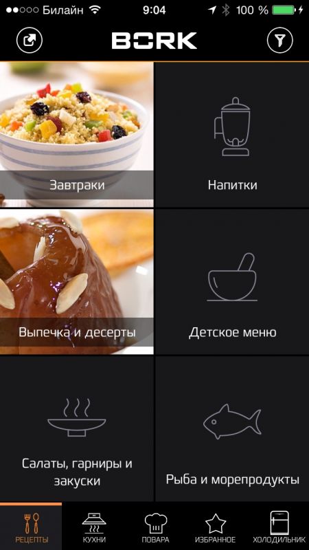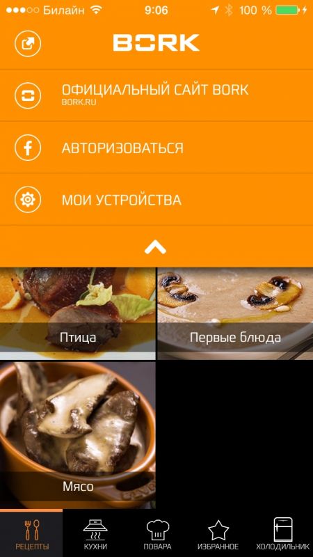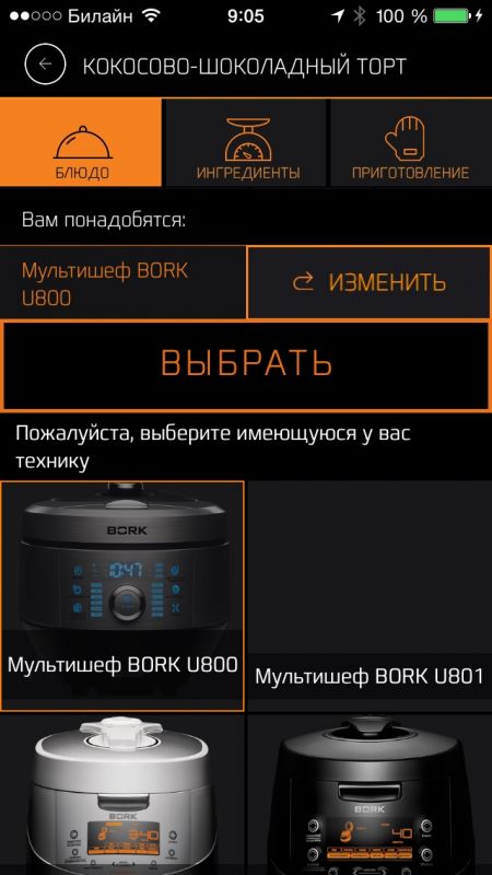 Ну и конечно приложение содержит информацию о технике BORK, в которой можно готовить все эти блюда.