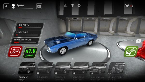 Физика также на уровне. Сценарий стандартный - выигрывайте гонки, зарабатывайте деньги и покупайте на них новые машины, и улучшайте существующие.