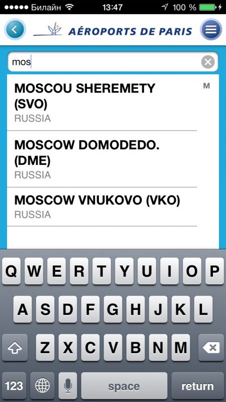 Приложение для ориентирования в аэропорту Шарль-де-Голль в Париже.