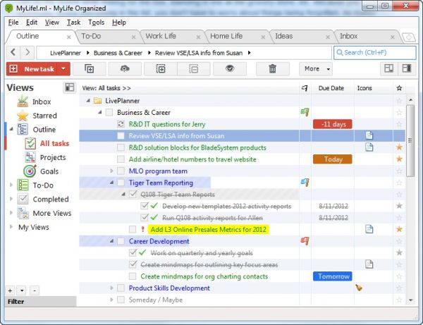 MyLifeOrganized является надежным помощником, который позволяет управлять и организовывать все свои проекты, задачи, встречи и списки дел. С MyLifeOrganized вам не при деется держать все в голове, программа сама вам будет напоминать о предстоящих делах.