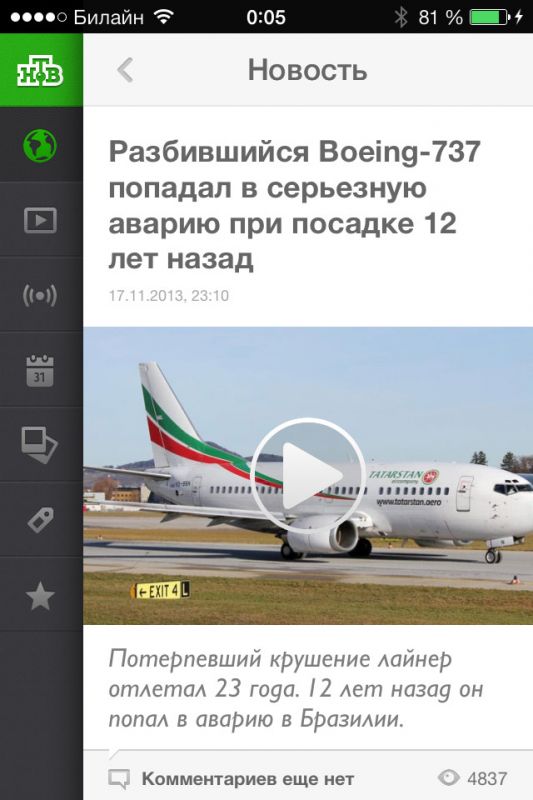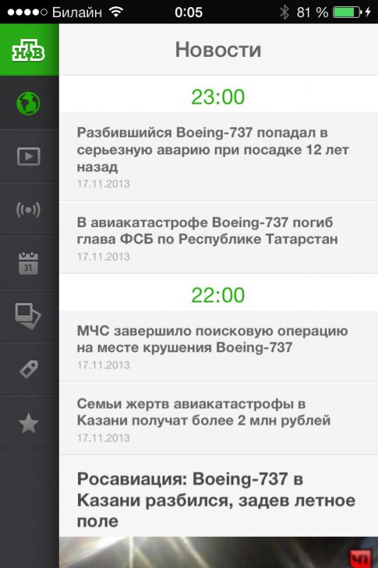 Официальное приложение НТВ. Показывает последние новости. Есть возможность просмотра эфира, телепрограммы. Можно сохранять видео и смотреть его при отключенном интернете. Можно настраивать шрифт для более удобного чтения. Хороший дизайн.