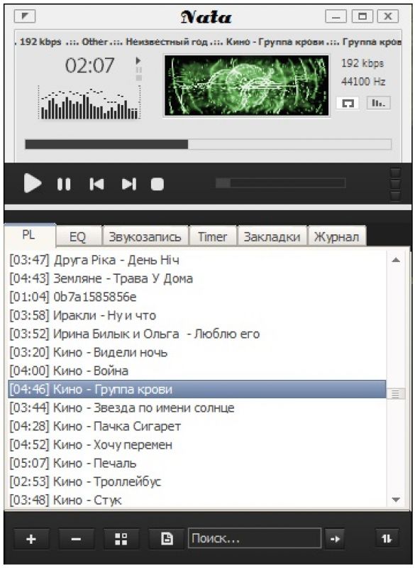 Nata - мощный и гибкий аудио центр, с помощью которого вы можете прослушивать и упорядочивать вашу музыкальную библиотеку (поддержываеться MP3, OGG, ALAC, FLAC, AC3, OFR, WAVE, APE, TAK, TTA и множество других форматов, а так же плейлисты в формате M3U), конвертировать аудио файлы из одного формата в другой, копировать музыку с аудио дисков, миксовать и нарезать аудио файлы и многое другое. Программа оптимизирована для минимального потребления системных ресурсов, стабильна и имеет интуитивно понятный и простой интерфейс, поддерживает смену внешнего вида при помощи скинов, а также смену языка и возможность загрузки дополнительных плагинов. Ну а встроенные функции и вагон полезных мелочей помогут превратить ежедневные рутинные операции в легкий и быстрый процесс. Выбирая Nata вы выбираете легкость простоту и комфорт, ведь это аудио плеер для людей а не для компьютеров.