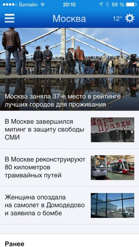 Новостное приложение от известного портала Mail.ru. Все самые актуальные события в стране и мире отбираются собственными редакторами. Содержит множество разделов: картина дня, политика, экономика, Москва, общество, события, культура, спорт, hi-tech, авто, игры, актуальные темы, фоторепортажи, видео, инфографика, прогноз погоды.