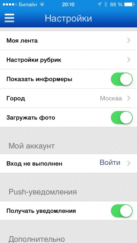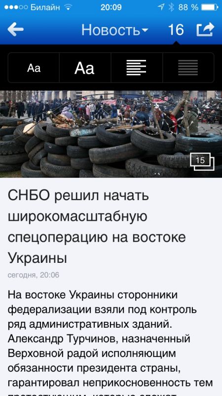 Интересная функция "Загрузить новости" позволяет загрузить новости, и читать потом их когда нет интернет-соединения.