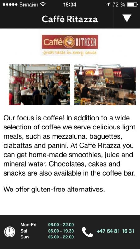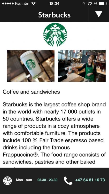 - Список магазинов и ресторанов.