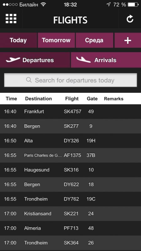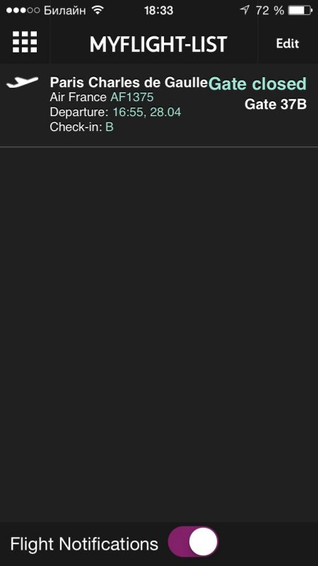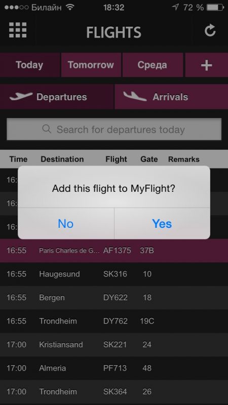 - "Мой полет". Добавляйте свои полеты в отдельный список и будте в курсе всех изменений.
