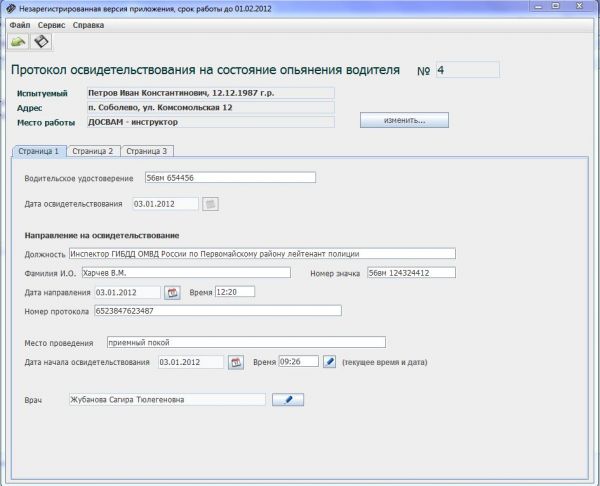 Освидетельствование на состояние опьянения - специализированное приложение, предназначенное для заполнения протоколов на состояние опьянения водителей. Благодаря данной программе, можно быстро заполнить протокол.