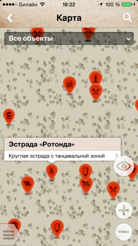 Каждый объект парка имеет подробное описание и фотографии.