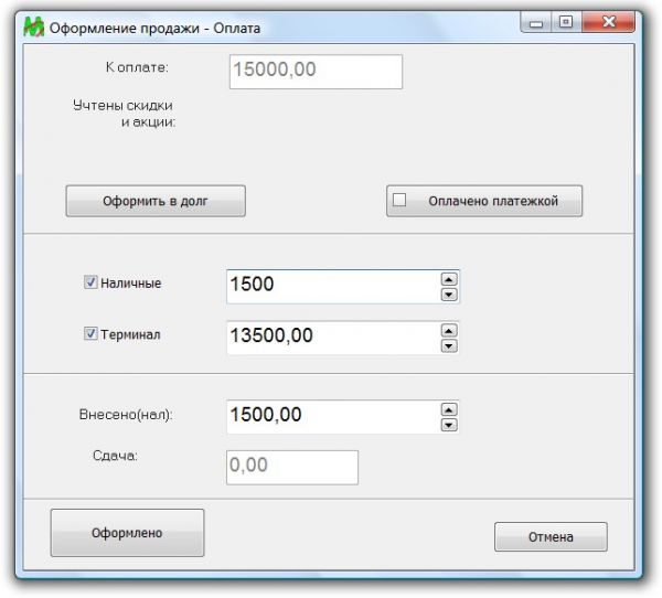 Печать чеков и договоров. Возможно сканирование штрих-кода или магнитной полосы карт клиентов для отмечания посещений.