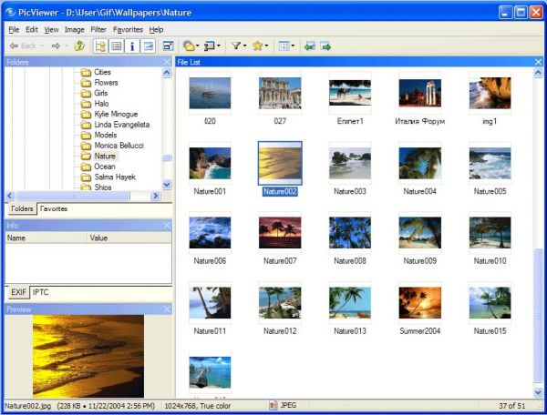 PicViewer - это весьма простой просмотрщик изображений, который поддерживает многочисленные форматы изображений: emf, bmp, png, pcx, ico, wmf, gif и другие. Также с помощью PicViewer можно просматривать слайд шоу, делать конвертацию документов, осуществляется поддержка gif файлов и много другое.