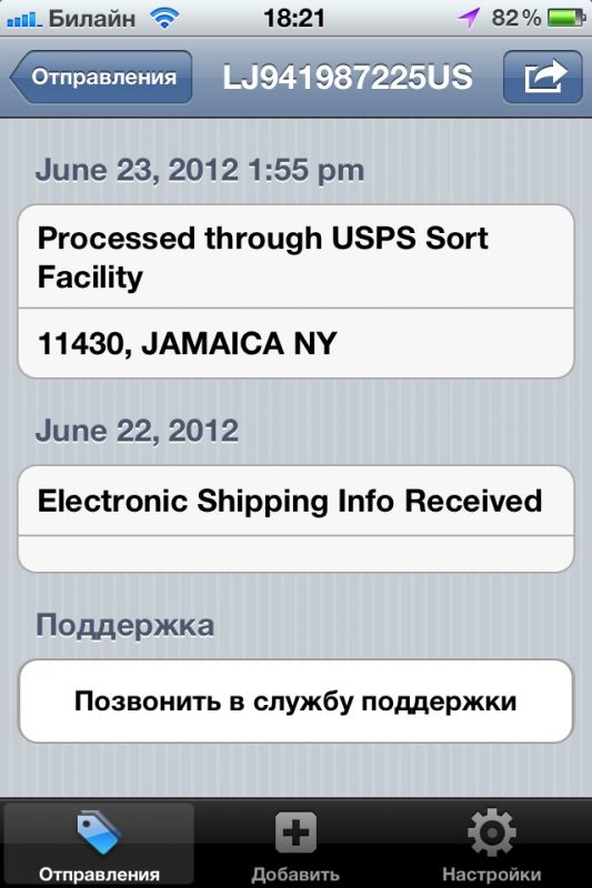 • Виджет для центра уведомлений (только iOS 8). Информирует об отправлениях, которые должны быть доставлены сегодня или завтра (поддерживаются только те службы, которые предоставляют ориентировочную дату доставки)