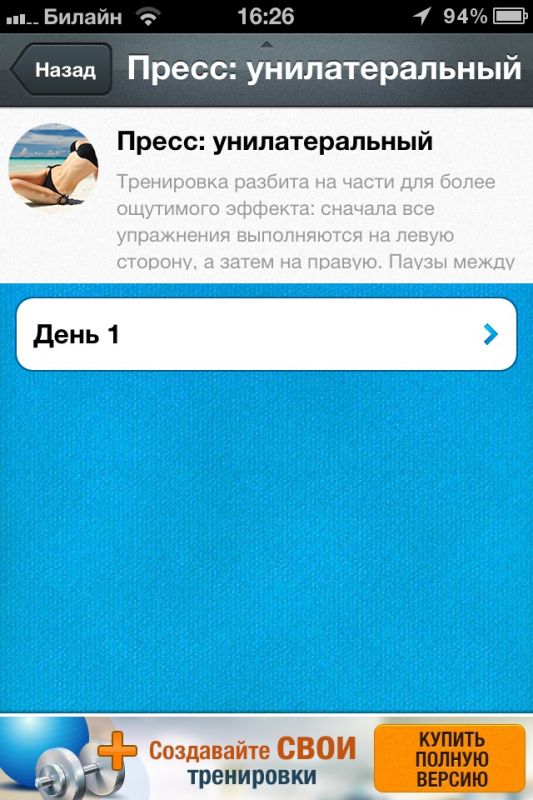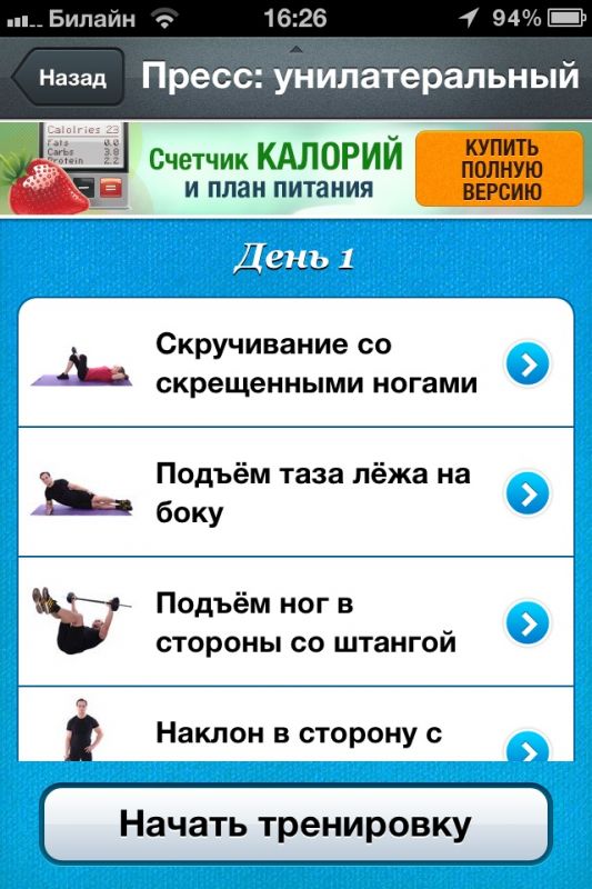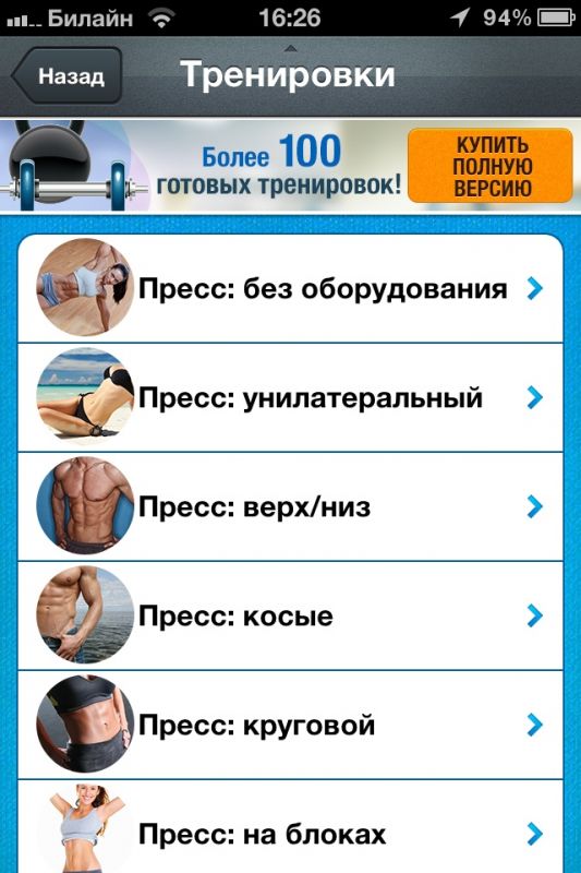 Заказать разработку мобильного приложения похожего на Пресс: упражнения и тренировки