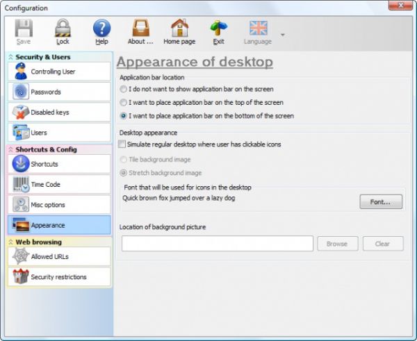 Public Kiosk Software - это удобная и простая программа, направленная на повышение безопасности вашего ПК. Данная утилита идеально подойдет для библиотек, кафе, школ и любых мест, где к компьютеру имеет доступ любой желающий. Установив приложение и проведя грамотную настройку, вы защитите системные ресурсы ПК, важные файлы и реестр.