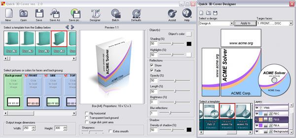 В итоге, используя автоматические инструменты редактирования и рисования, Quick 3D Cover заменяет ручную работу Фотошопа. В галерее уже имеется более 100 шаблонов. Делайте картинки прозрачными, пользуйтесь профессиональным редактором и работайте с любыми форматами. Также имеется пакетная обработка.