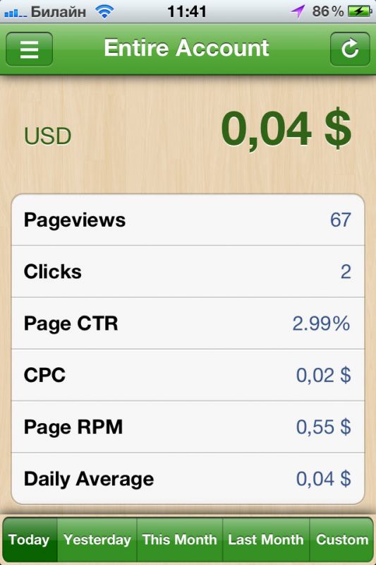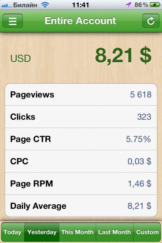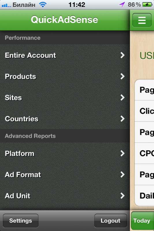 Все отчеты, что доступны на сайте Google Adsense также доступны и в приложении.