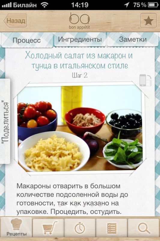 6. «Рецепты Bon Appetit» интегрируется с Вконтакте, Facebook и twitter