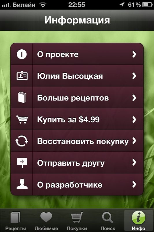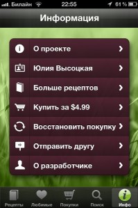 Заказать разработку мобильного приложения похожего на Рецепты Юлии Высоцкой