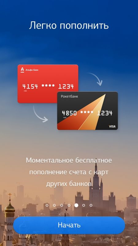 - Пополнение карты с счетов других банков.