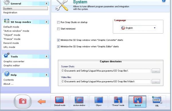 1. Несколько режимов захвата: весь экран, активное окно, или выбранная область.