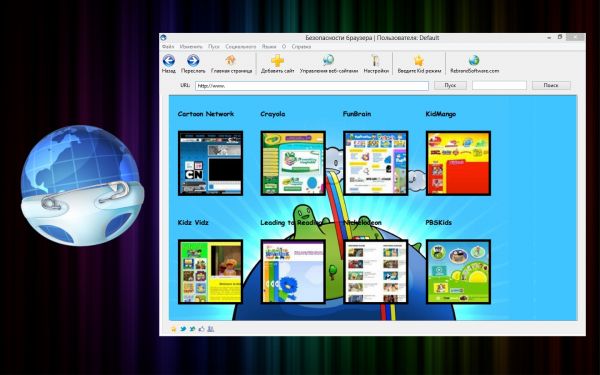 Вы сами можно назначить ресурсы, которые можно открывать. Любые ссылки, изображения и реклама будут блокироваться. Также имеется возможность настроить стартовую страницу и добавить скриншоты основных сайтов для посещения.