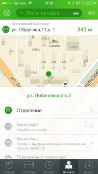 - Поиск ближайших отделений. Показывает режим работы и контактную информацию. Осуществляет навигацию по карте.