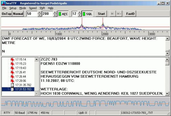 Используя обычный компьютер со звуковой картой и приемник, вы получаете прекрасную возможность обмениваться сообщениями и различными данными с помощью приложения SeaTTY. Отправляйте друг другу карты погод, сообщения, навигационные предупреждения по протоколам Navtex, RTTY, HF-FAX.