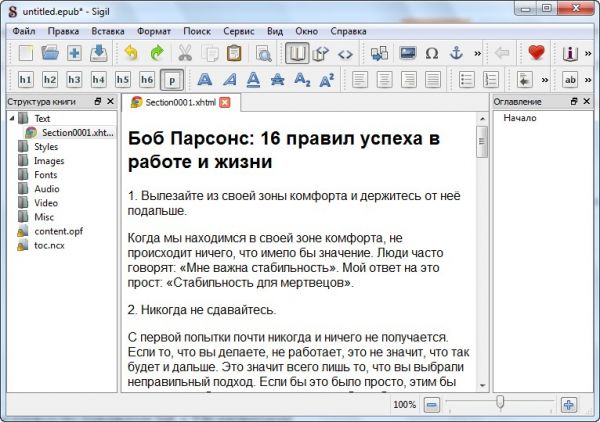 Особенности программы «Sigil Portable»: