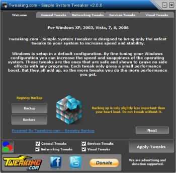 Simple System Tweaker - приложение, использующееся для настройки системных файлов виндоус, для их ускоренной работы. Благодаря данной программе, вы сможете увеличить стабильность работы и скорость выполнения различных операций. Приложение проводить тонкую настройку, которая не имеет рисков и является полностью безопасной.