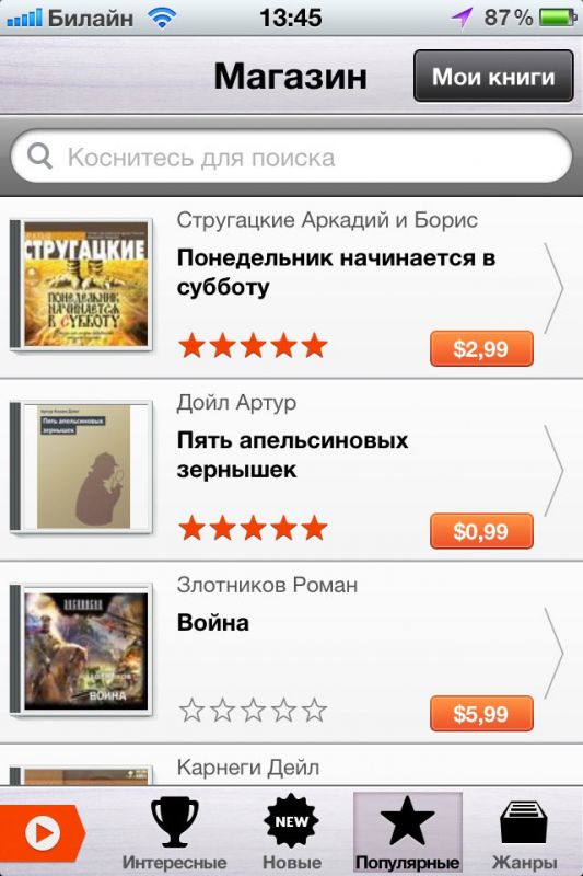 Слушай! – это приложение от «ЛитРес», позволяющее прослушивать их книги на вашем мобильном устройстве. Вы мгновенно получите доступ ко всей библиотеке аудиокниг «ЛитРес», насчитывающей более 3000 наименований.
