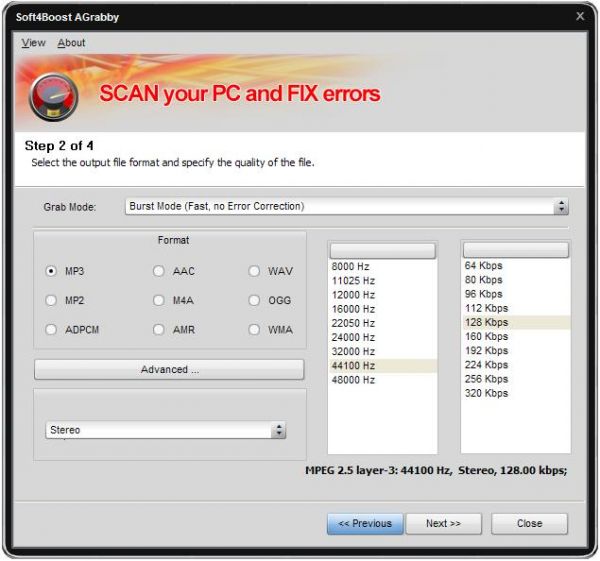 Soft4Boost AGrabby поможет вам скопировать содержимое музыкальных компакт дисков и сохранить его в одном из предлагаемых форматов, среди которых есть MP3, AAC, WAV, WMA и др.