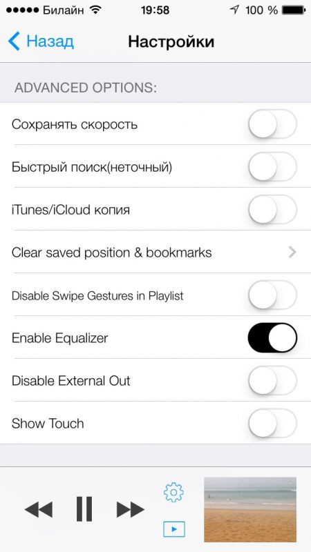 - Возможность убыстрять и замедлять скорость воспроизведения видео.