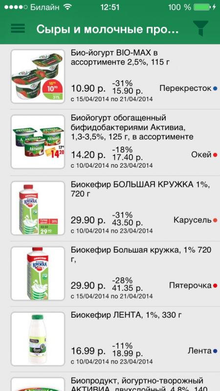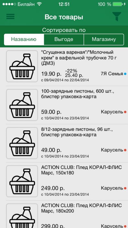 Супер цена! - приложение для поиска дешевых цен на основные продовольственные продукты по супермаркетам Москвы и Санкт-Петербурга. В меню можно выбрать категорию товаров, а также набор интересующих магазинов. Список продуктов можно отсортировать по названию, выгоде, магазину. Таким образом приложение Супер цена! поможет вам сэкономить на каждодневных покупках.