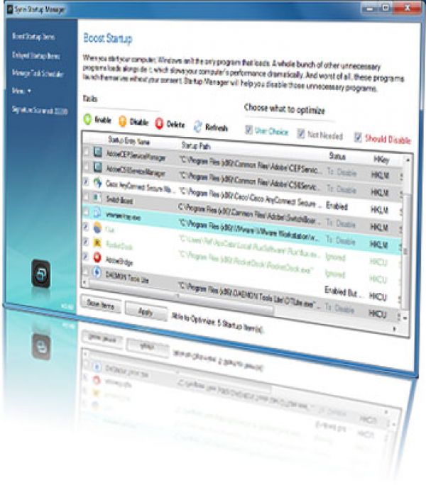 Synei Startup Manager - удобный инструмент, благодаря которому вы можете настроить программы, которые необходимо запускать вместе с операционной системой. После установки большого количества приложений, в автозапуск попадается много лишних данных, которые тормозят работу всей системы.
