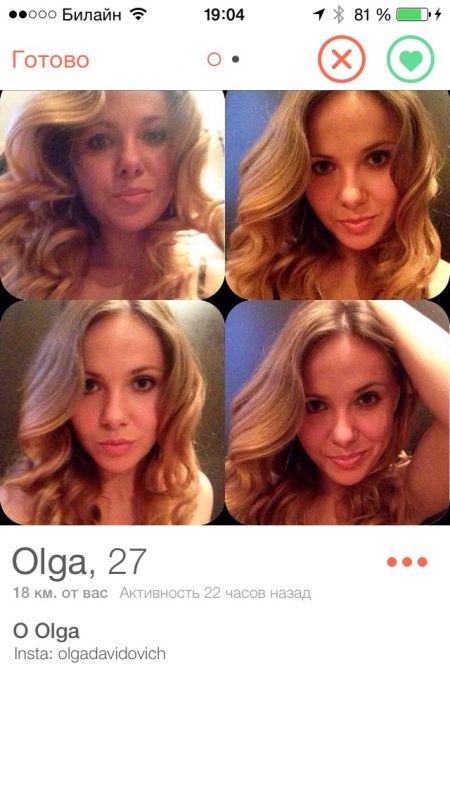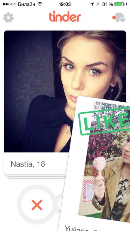 Tinder - известное приложение для знакомств. Суть состоит в том, что после регистрации вам показываются карточки других пользователец. Если вам понравился человек, то нужно смахнуть карточку право, если нет, то влево. В случае если вам понравился человек, и вы понравились ему/ей, вы можете продолжить общение.