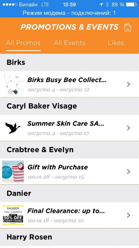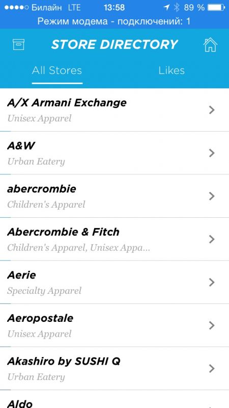 Также можно добавить понравившийся магазин в избранное. После этого проходя мимо магазина, рядом с которым установлен iBeacon-маяк, в случае если в этом магазине есть скидки или новые поступления, вы получите пуш-уведомление.