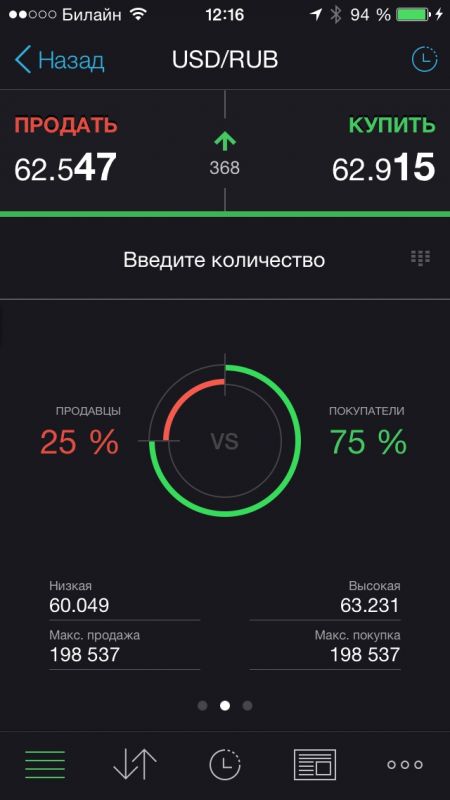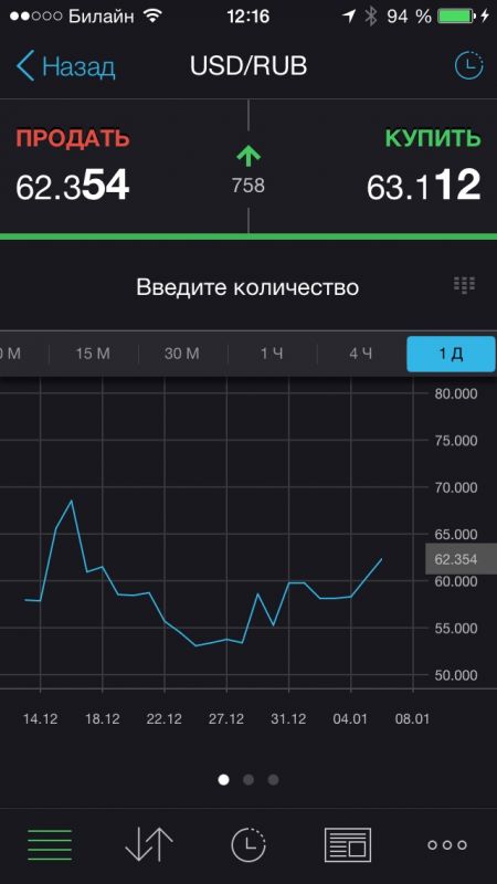 - Качественные графики с возможностью переключения с обычной кривой на график японских свечей.