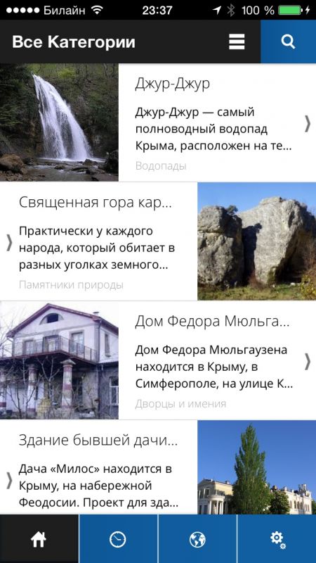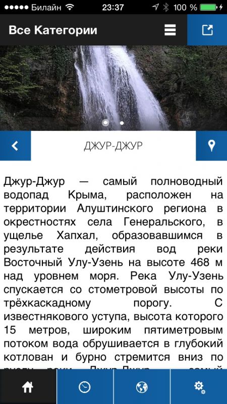 - Водопады Крыма. Содержит как известные водопады, так и не очень (Джур-Джур, Весенний, Козырек и т.д.).