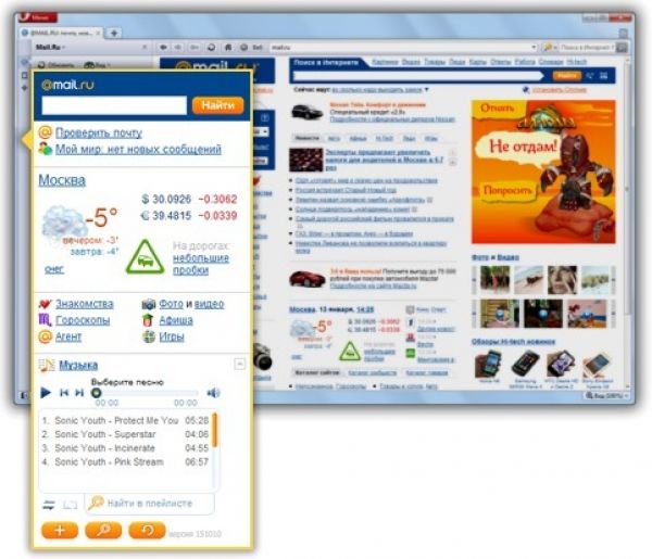 Используя Тулбар Спутник@Mail.Ru, вы можете быстро находить информацию через любой браузер, пользуясь установленной формой. Следите за погодой, курсами валют, пользуйтесь музыкальным плеером, узнавайте данные о пробках, просматривайте истории поискового запроса и многое другое.