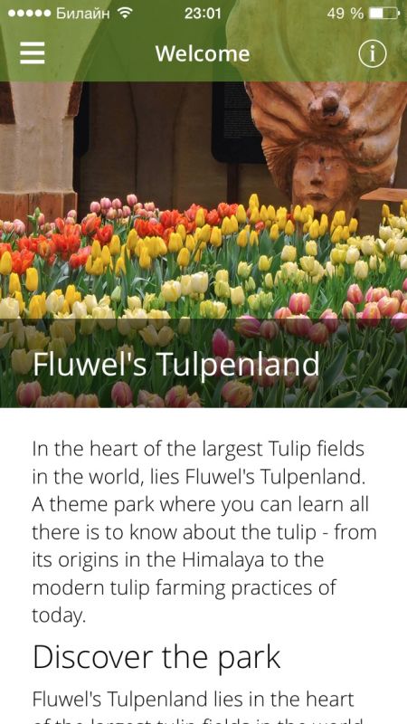 Приложение музея тюльпанов в Голландии. Подробная информация, аудиоконтент и история тюльпанов. Можно пройти тестирование на знание тюльпанов. Интеграция с социальными сетями - твиттером и фейсбуком. Современный качественный дизайн.