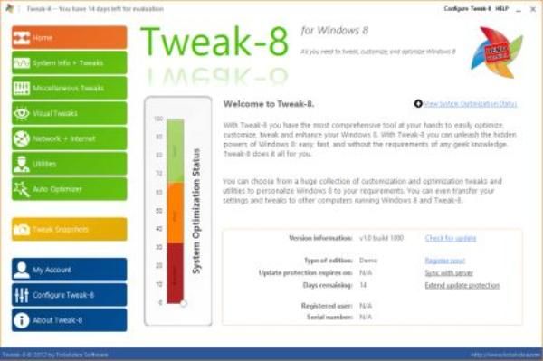 Tweak-8 – это мощная утилита для тонкой настройки и оптимизации работы Windows 8, позволяющая настроить все аспекты работы за этой операционной системой.