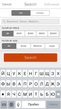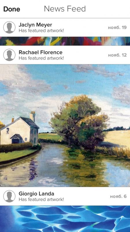 Также есть функция просмотра картин у художников, живущих поблизости. К сожалению в России пользователей Vango не так много, поэтому из местных художников никто не нашелся.
