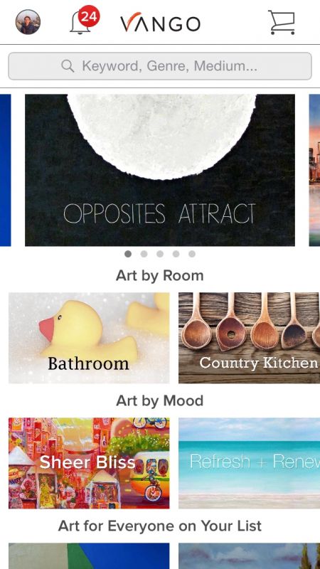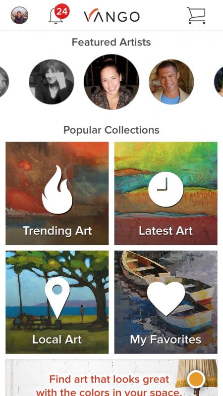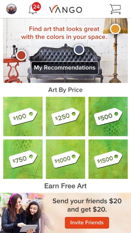 Vango - известное мобильное приложение для покупки картин у художников. Каждый художник может выставить свою картинку на продажу, а ценитель живописи купить ее.