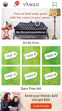 Картины недорогие. Можно купить как за 100$ так и за 300$. Есть фильтр по цене. Вы можете сфотографировать свою стену, и Vango наложит картинку на нее, так, что вы сможете оценить как картина будет выглядеть на ней.