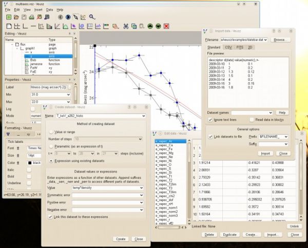 Veusz – это инструмент, который поможет вам манипулировать и создавать графические структуры. Veusz предназначена для производства публикаций готовых Postscript или PDF. SVG, EMF и экспорта растровых форматов.