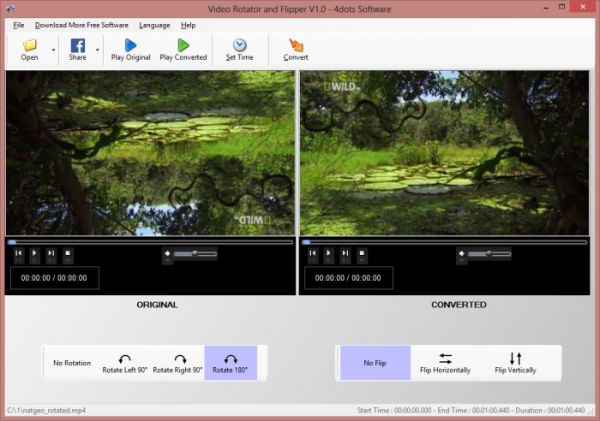 Video Rotator and Flipper - крайне полезная программа в некоторых случаях. Часто случается так, что после записи видео на мобильный девайс или даже планшет, видео записывается не под нужным ракурсом, что доставляет много неудобств при просмотре записи на ПК. Благодаря данной программе, вы сможете изменить ракурс и нормально посмотреть видео. Для этого запустите приложение, выберите удобный ракурс и переконвертируйте запись.