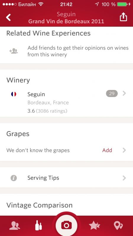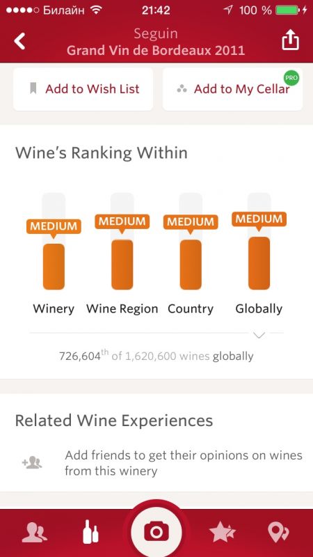 Можно посмотреть как это вино оценивают ваши друзья. Кроме того вивино позволяет осуществлять поиск по ближайшим магазинам вин.