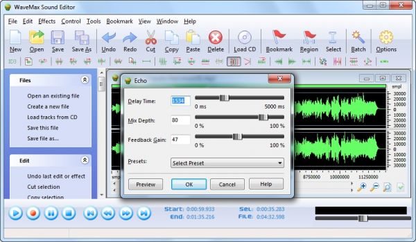 WaveMax Sound Editor - можно сказать профессиональный инструмент, который позволяет редактировать аудио файлы и используется как мастеринг. Создавайте и редактируйте необходимые аудио CD, анализируйте и записывайте новые треки.