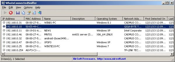 WhoIsConnectedSniffer - бесплатный инструмент, который помогает обнаружить устройства, подключенные к сети. Утилита умеет прослушивать сетевые пакеты и использует в работе драйвера захвата.